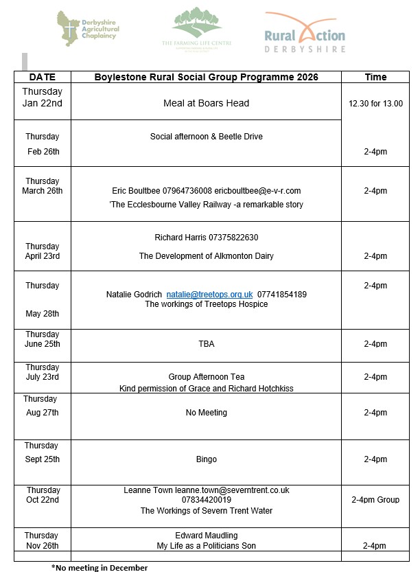 - Boylestone meets monthly on a Thursday